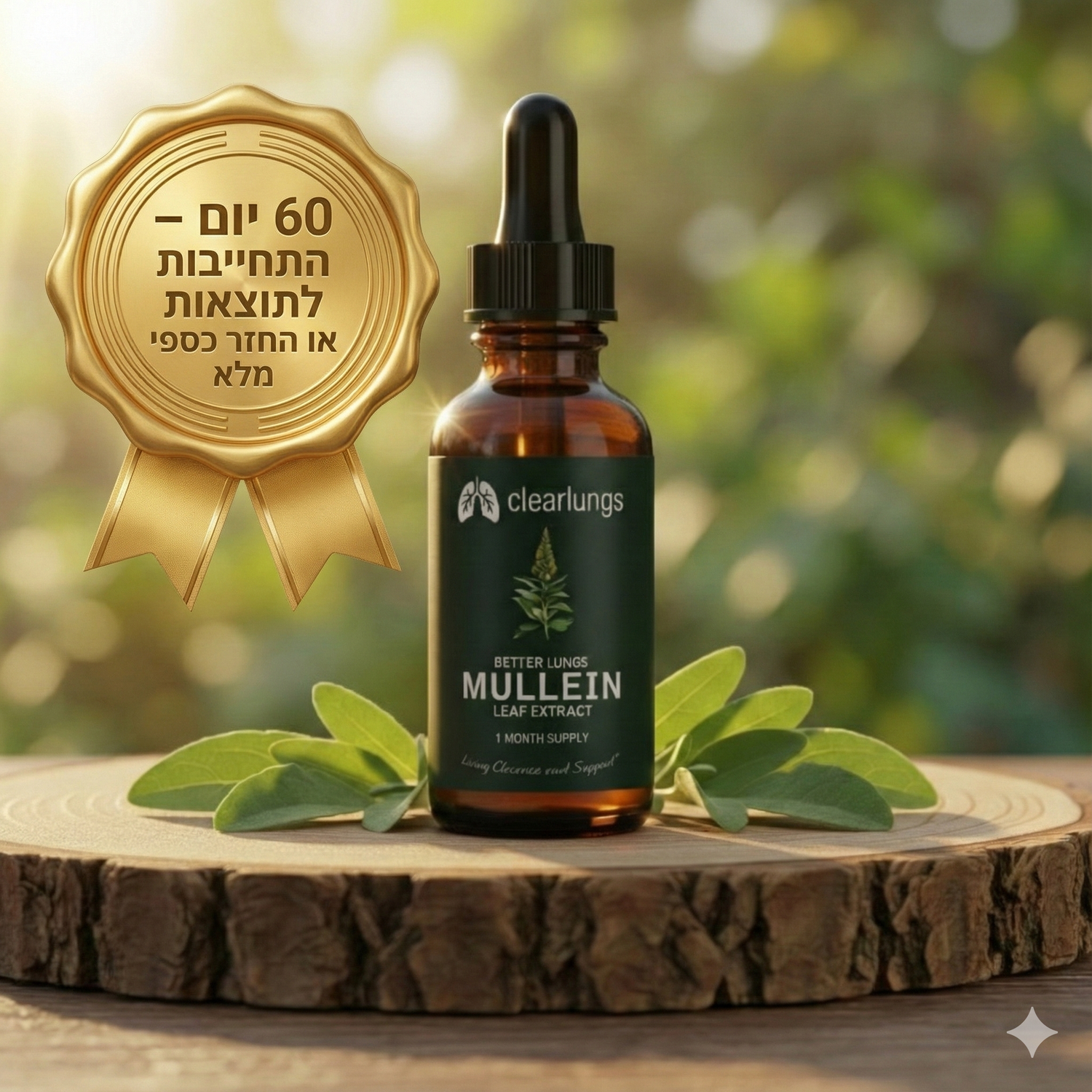 הפורמולה של clearlungs מבוססת על תמצית עלי מוליין טהורה, בריכוז אופטימלי לתמיכה בבריאות דרכי הנשימה, לניקוי הריאות ולהקלה על גודש ושיעול באופן טבעי.