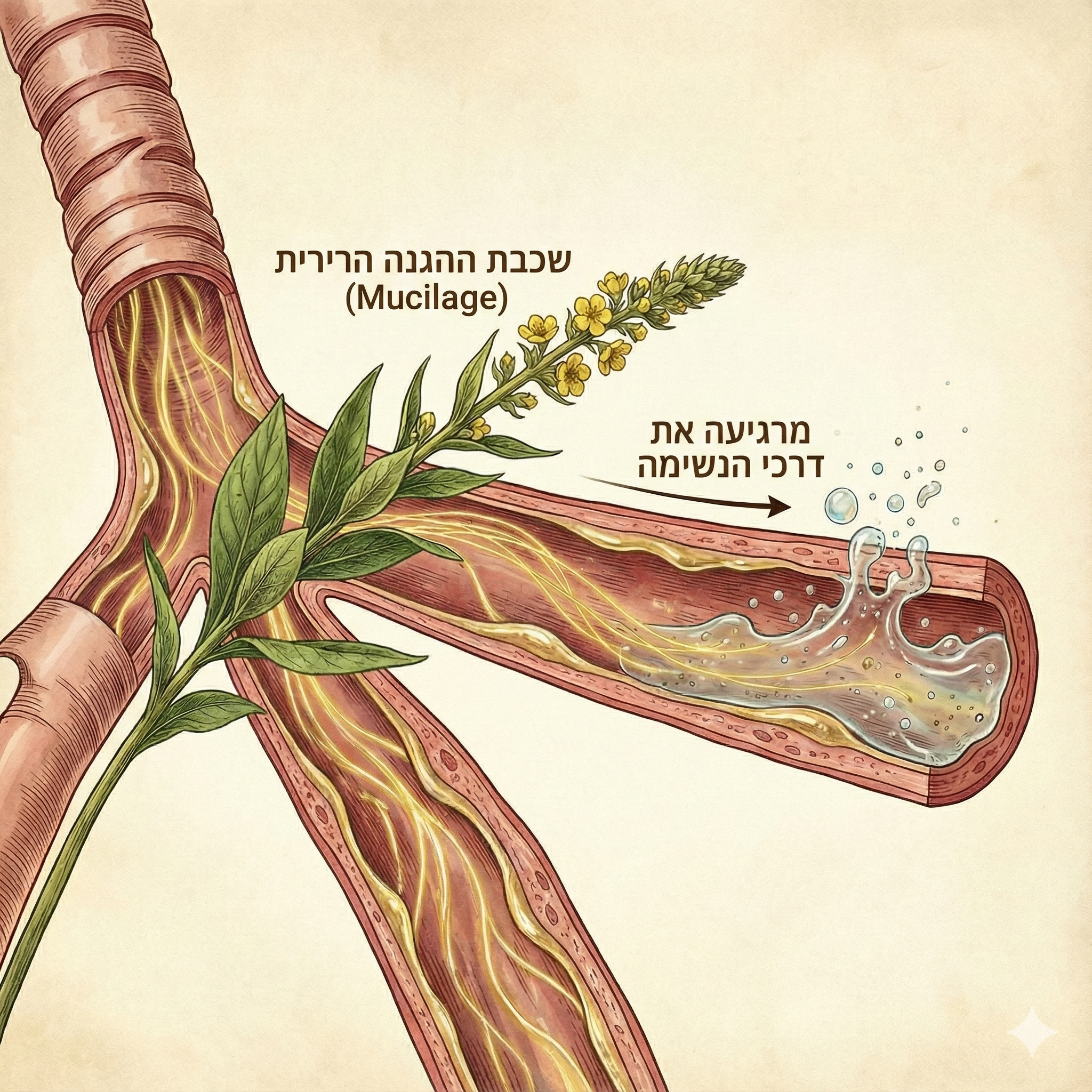 המרכיבים הפעילים בריכוז גבוה, ובהם המוסילג' (Mucilage) והספונינים, ידועים ביכולתם לרכך את הריריות, להרגיע גירוי ולספק פעילות אנטי-דלקתית ומכייחת.