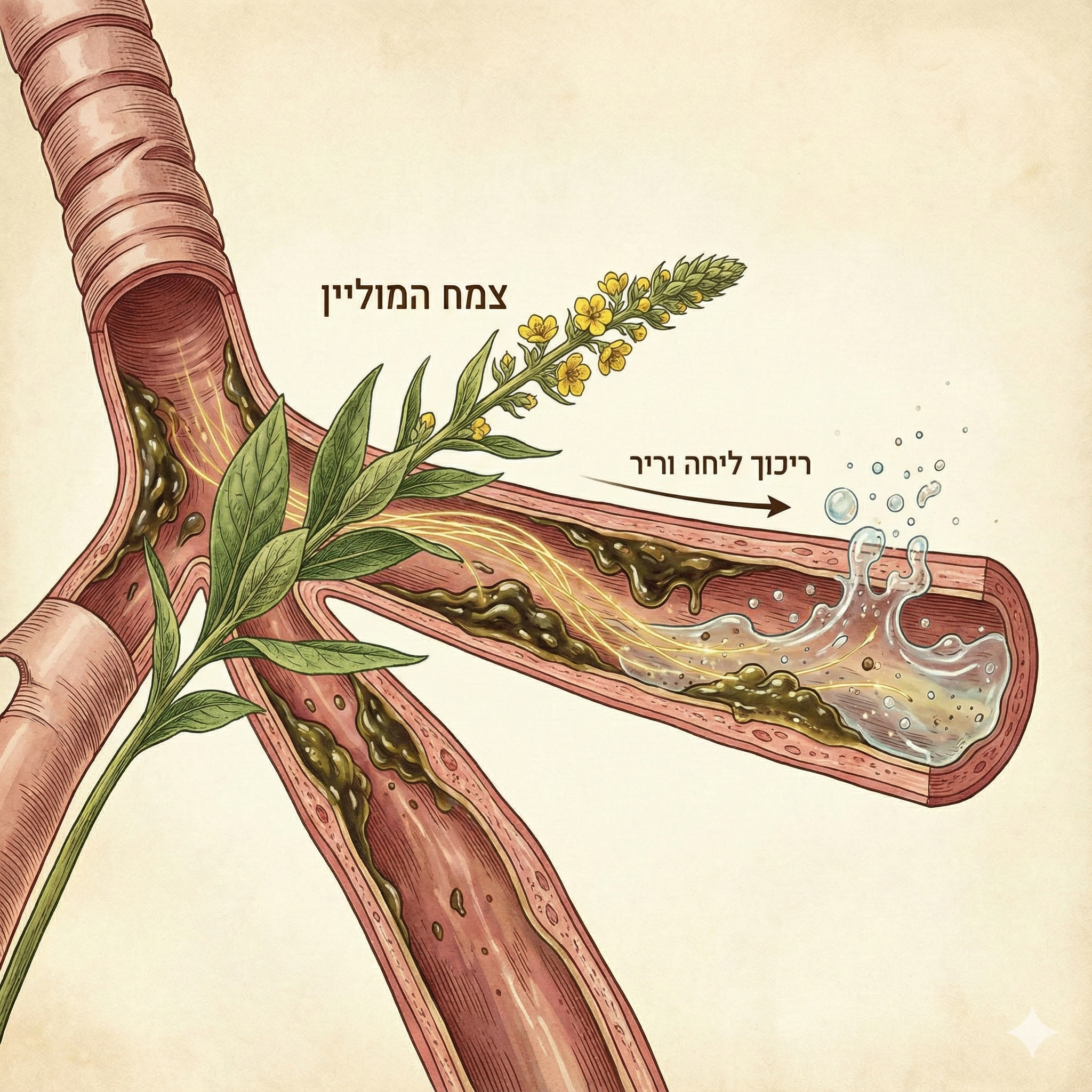 •המוליין מתחיל לרכך את הליחה והריר שהצטברו בדרכי הנשימה